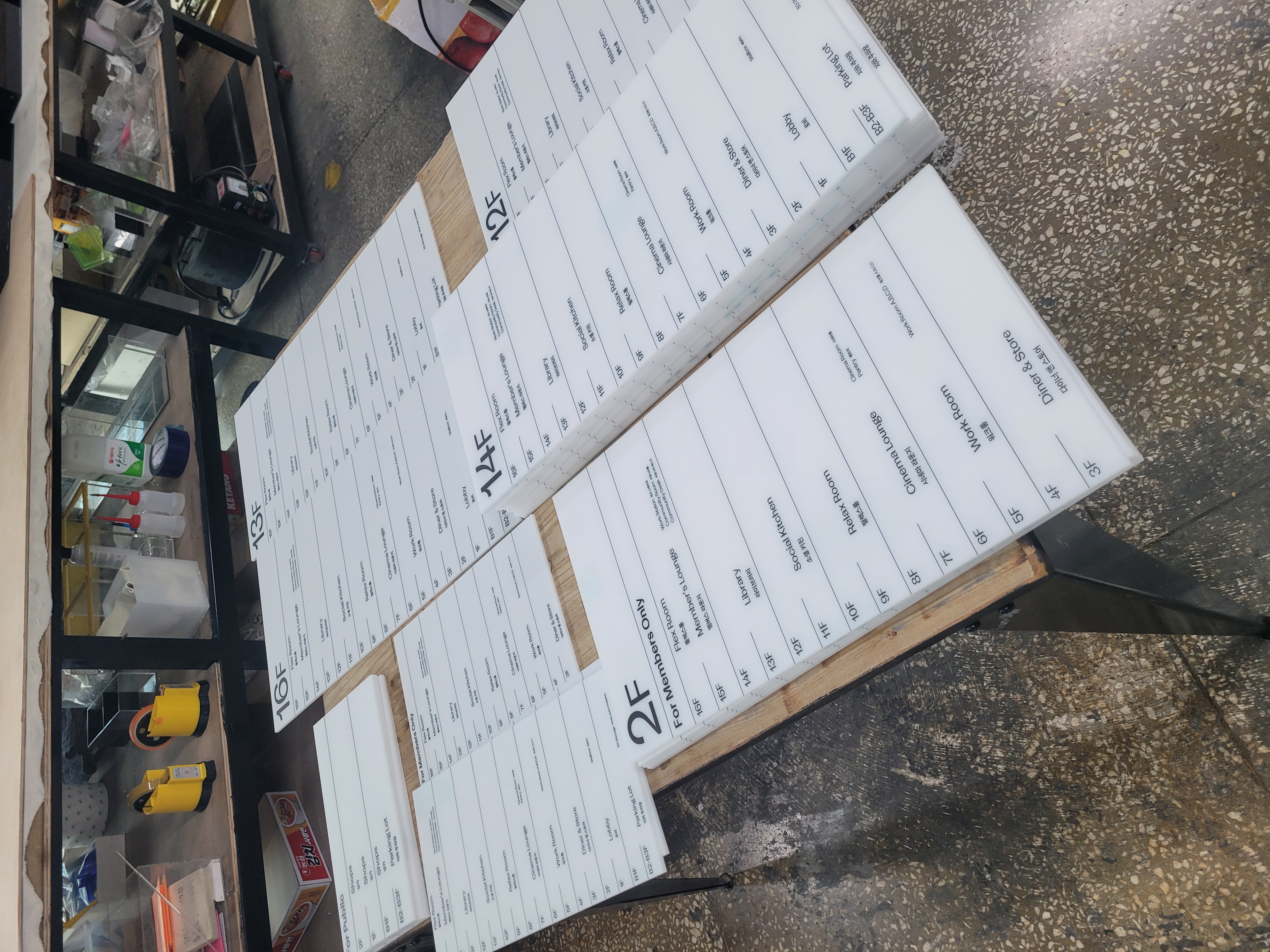물류창고, 공장, 산업시설을 위한 실용적인 아크릴 사인을 제작합니다. 안전 표지판, 구역 안내, 작업 지시 안내 등 산업 현장에 필수적인 정보 사인을 제작하며, 위험 구역 경고, 비상구 안내, 소화기 위치 표시 등 안전 관련 법규를 준수하는 필수 사인도 함께 제공합니다. 먼지, 습기, 온도 변화 등 열악한 환경에서도 내구성을 유지하는 소재를 사용하며, 대량 주문 시 경제적인 단가로 제작해 드립니다.