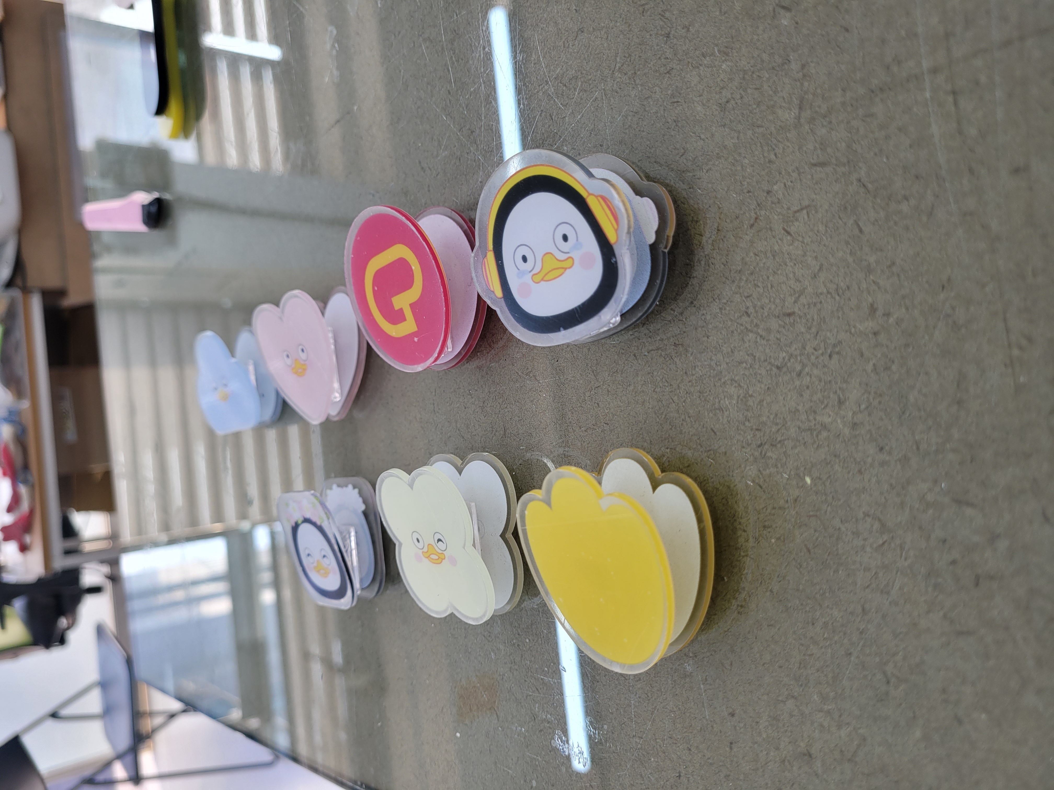 휴대폰 고리, 에어팟 케이스 참, 버디 스트랩 등 다양한 용도의 아크릴 소품을 제작합니다. 키링을 넘어 다양한 곳에 달아 포인트가 되는 아크릴 액세서리로 소지품에 나만의 감성을 더하세요. 스마트폰 케이스에 달 수 있는 폰스트랩 참, 에어팟과 에어팟 맥스 케이스에 달 수 있는 미니 참, 크로스백과 숄더백 스트랩에 달 수 있는 백참 등 다양한 형태와 사이즈로 제작합니다. 카드지갑, 필통, 파우치, 캐리어 등 일상의 모든 소지품에 달아 나만의 개성을 표현할 수 있으며, 트렌디한 디자인을 지속적으로 업데이트하고 있습니다.
